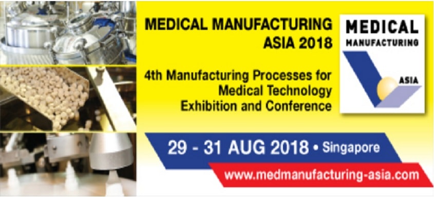 The 4th edition of MEDICAL MANUFACTURING ASIA is fast gaining traction as the region’s leading specialist trade exhibition for the medtech and medical manufacturing sectors. Following the success of the 2016 edition, the exhibition welcomed 200 companies from 18 countries, and 5,420 trade visitors from 52 countries. For booth space booking and more information on MEDICAL MANUFACTURING ASIA 2018, please visit www.medmanufacturing-asia.com.