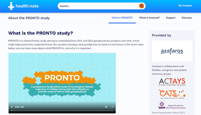 Diana Pangonis, Director of Family Services, from the patient advocacy group the National Tay-Sachs and Allied Diseases (NTSAD) said: “Collaborating and empowering families and parents is vital to the success of any project and Azafaros understands this by establishing a ‘co-creation framework’ in developing the PRONTO digital educational resources about the release of the company’s natural history study along with advocates like myself. It was meaningful experience for us all.”